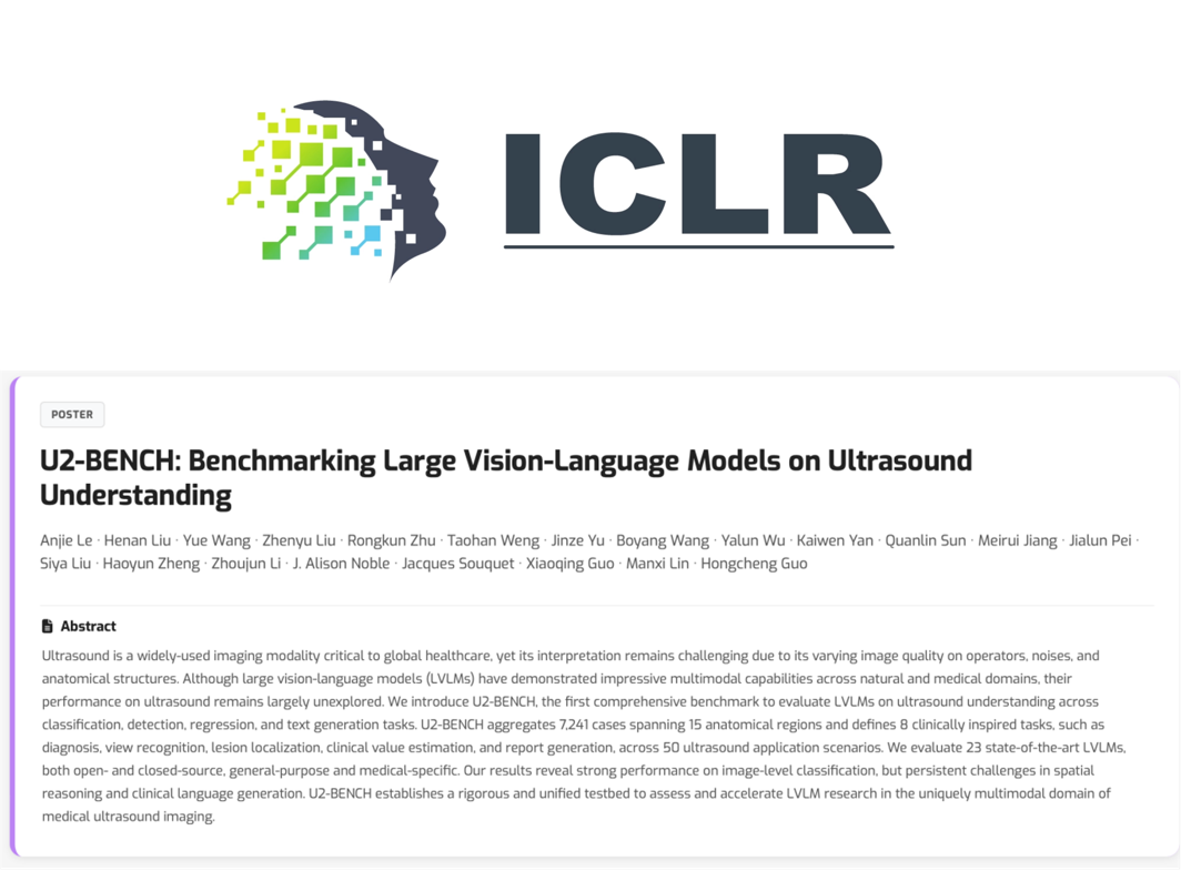 近日,逸超&海豚安捷博士团队主导制定的全球首创超声大模型测评基准,成功被ICLR2026(国际学习表征会议)收录,并受到新华网、美联社等多家国内外权威媒体的报道,成为全球首个系统性评估视觉语言大模型(LVLMs)在超声领域应用能力的专业基准,精准填补了当前超声AI领域缺乏标准化、专业化评估体系的行业空白,推动超声AI从......